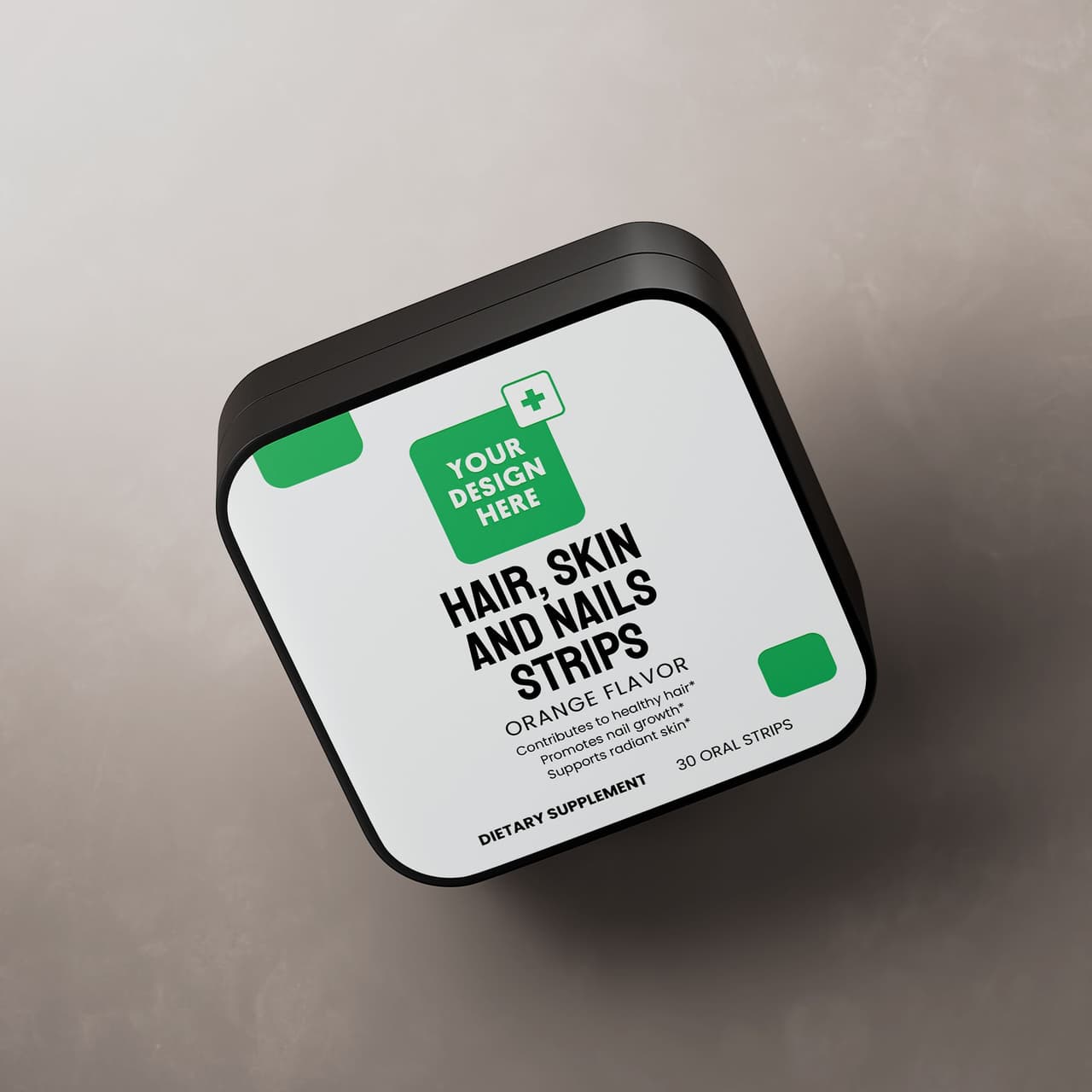 Support your natural glow with our Hair, Skin and Nails Strips, formulated with Biotin, Folate, and Vitamin D3. These quick-dissolving orange-flavored oral strips promote the normal maintenance of healthy hair, skin, and nails as part of your everyday wellness habits. Take one strip a day, letting it melt on your tongue — no water needed.*