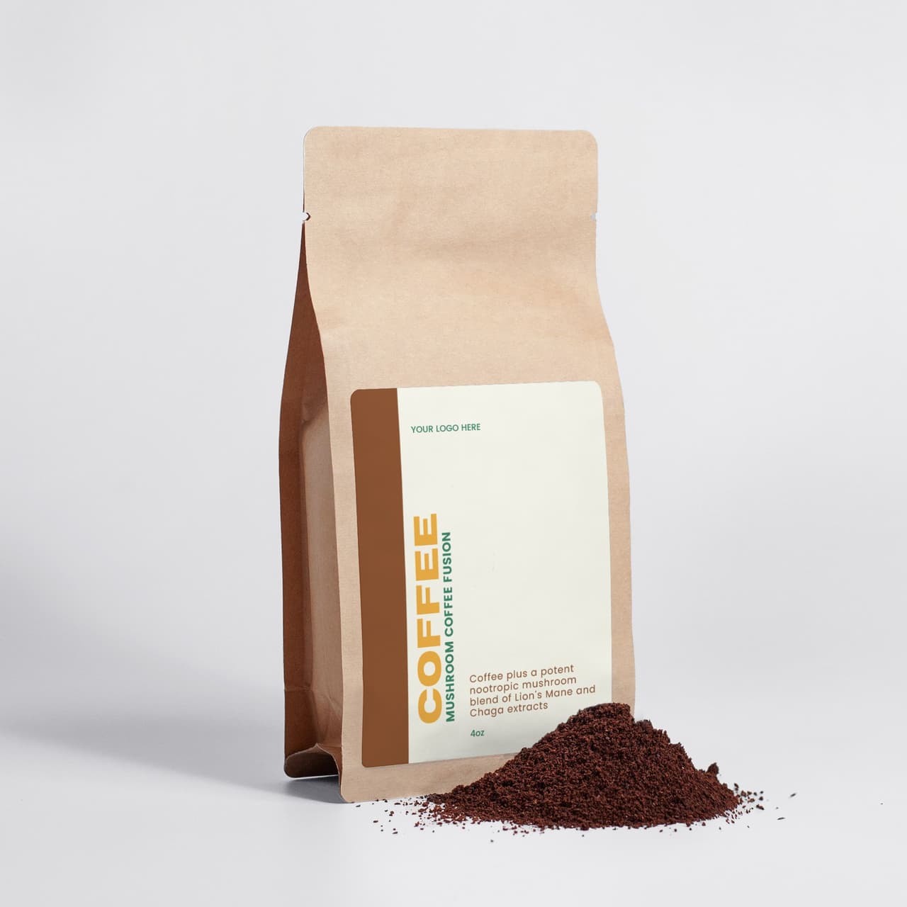 Ingredients: 90% Arabica Coffee, 5% Lion's Mane Mushroom Powder, 5% Chaga Mushroom Powder.